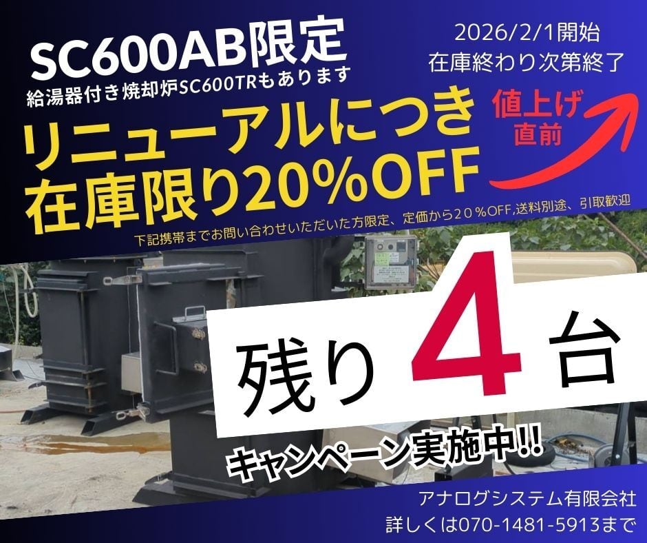 本焼却炉が届出不要で設置可能かどうか、お客様のお住いの自治体に確認後、折り返しご連絡致します。入札される前に必ずご連絡下さい。